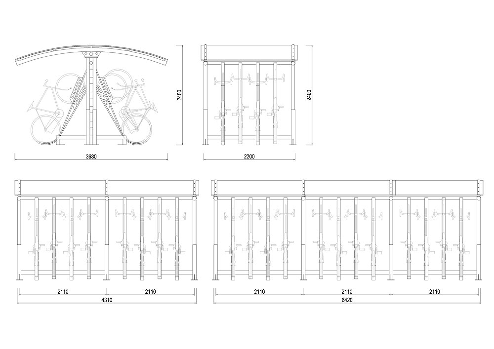 Cyklostánek E-CT02 je dostupný jako modulová řada v délkách 2200 mm, 4310 mm a 6420 mm.
