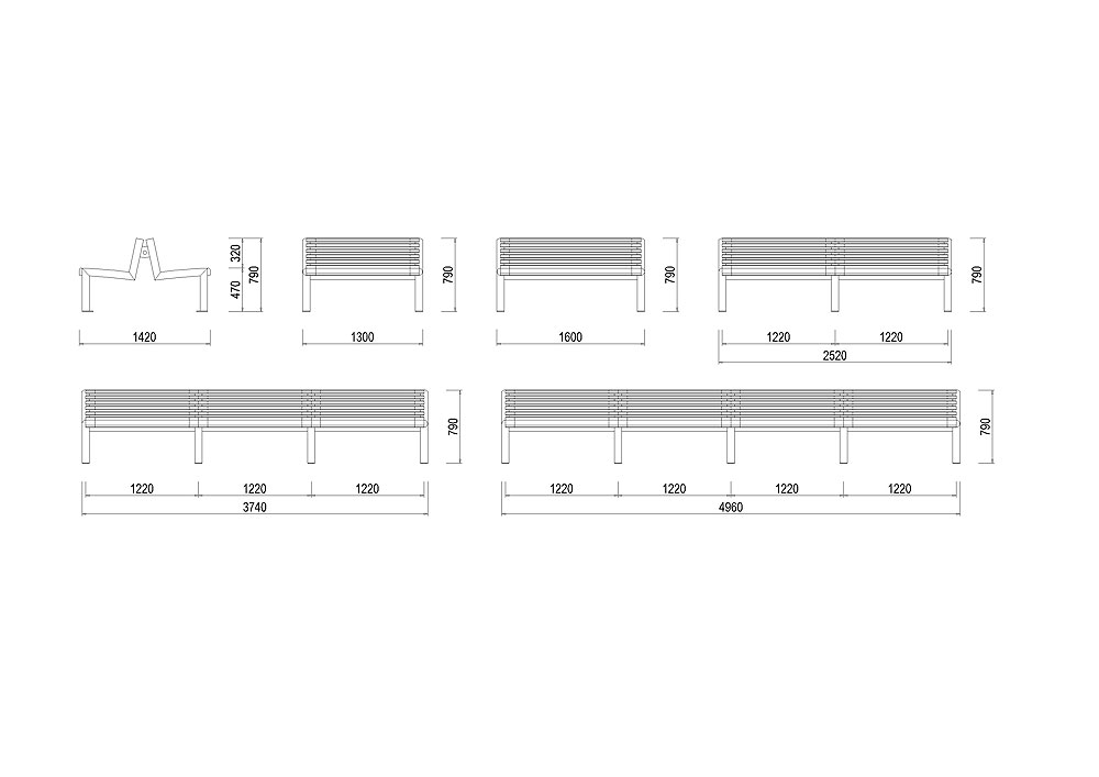 Lavička E-LA05 je dostupná ve dvojím provedení a to 1300 mm a 1600 mm dlouhá nebo jako modulová řada 2520, 3740 a 4960 mm dlouhá. Skládá se ze dvou krajních rámů z hliníkových trubek a hliníkových pouzder, ve kterých jsou upevněny profily sedadla a opěradla z impregnovaného dřeva mořeného do různých barevných odstínů.