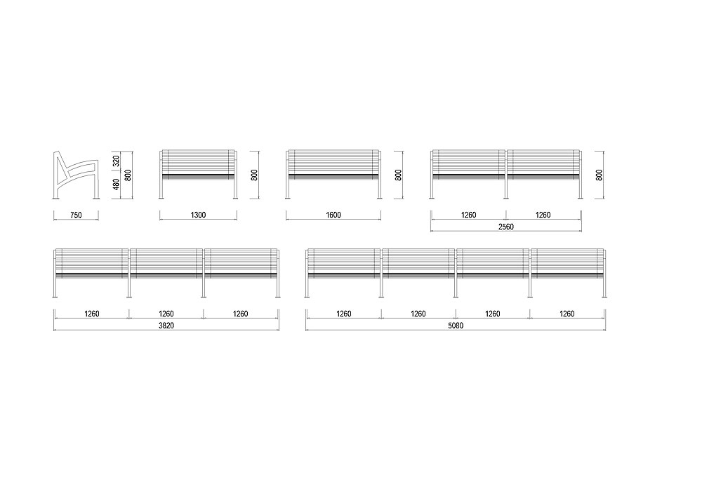 Lavička D-LA05 je dostupná ve dvojím provedení a to 1300 mm a 1600 mm dlouhá nebo jako modulová řada 2560, 3820 a 5080 mm dlouhá. Skládá se ze dvou krajních rámů z hliníkových profilů a hliníkových pouzder, ve kterých jsou upevněny profily sedadla a opěradla z impregnovaného dřeva mořeného do různých barevných odstínů.