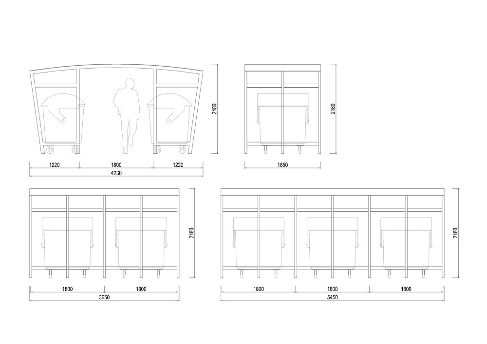 | D-PK03b | přístřešek pro čtyři kontejnery délky 3650 mm |