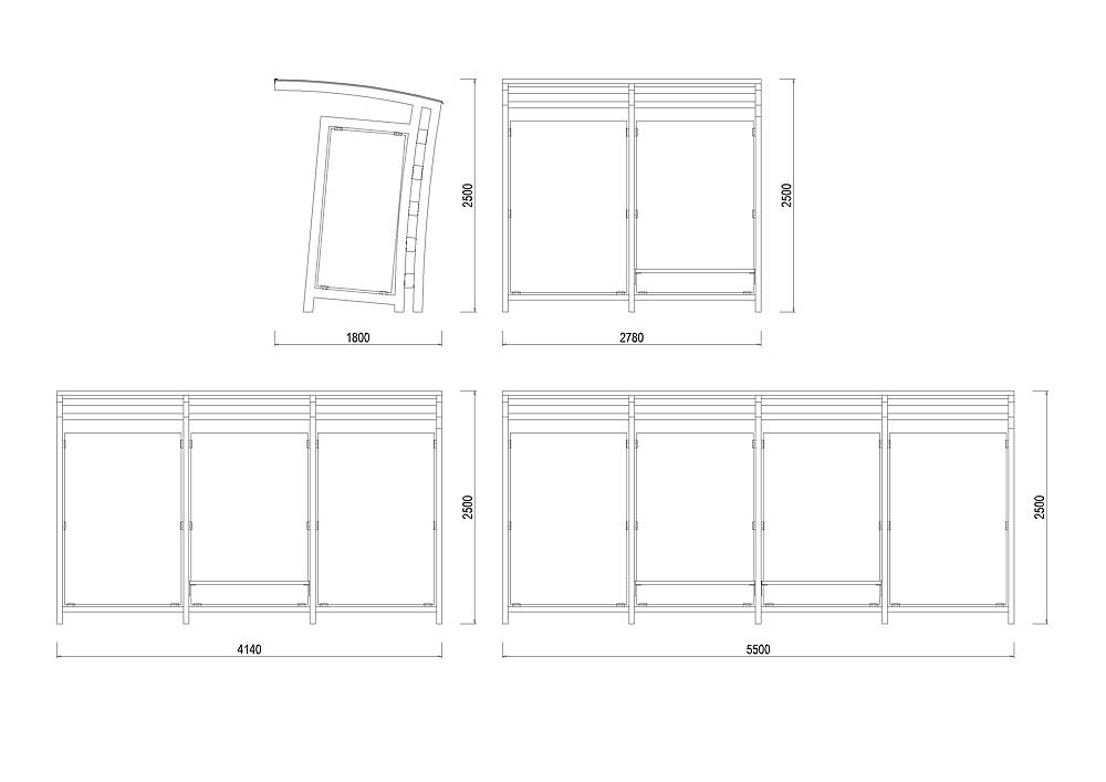 Zastávka D-ZS02 je dostupná jako modulová řada 2780, 4140 a 5500 mm dlouhá. Je vyrobena z hliníkových profilů skružených do mírného oblouku.