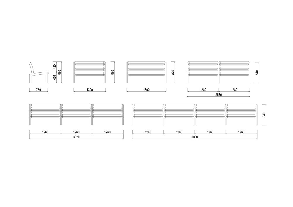 Lavička S-LA03 je dostupná ve dvojím provedení a to 1300 mm a 1600 mm dlouhá nebo jako modulová řada 2560, 3820 a 5080 mm dlouhá. Skládá se ze dvou krajních rámů z hliníkových profilů a hliníkových pouzder, ve kterých jsou upevněny profily sedadla a opěradla z impregnovaného dřeva mořeného do různých barevných odstínů. Lavička je připravena pro upevnění k podkladu většími ocelovými šrouby. Všechny hliníkové části jsou pokryty polyesterovým práškem.