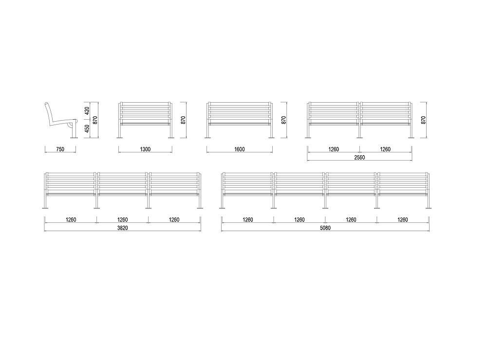 S-LA07Parková lavička s výplní z latí - vetknutá