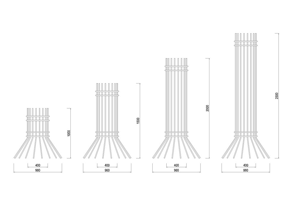 Ochranná mříž X-OM01 je dostupná jako 1000, 1500, 2000 a 2500 mm vysoká. Skládá se ze dvou půlkruhových částí tvořících dohromady plný kruh. Mříž je vyrobena z hliníkových prutů kruhového průřezu, které jsou ve spodní části zalomené a přivařené k příčným prutům ohnutým do půlkruhu.